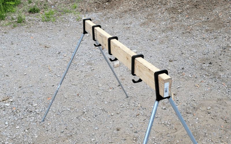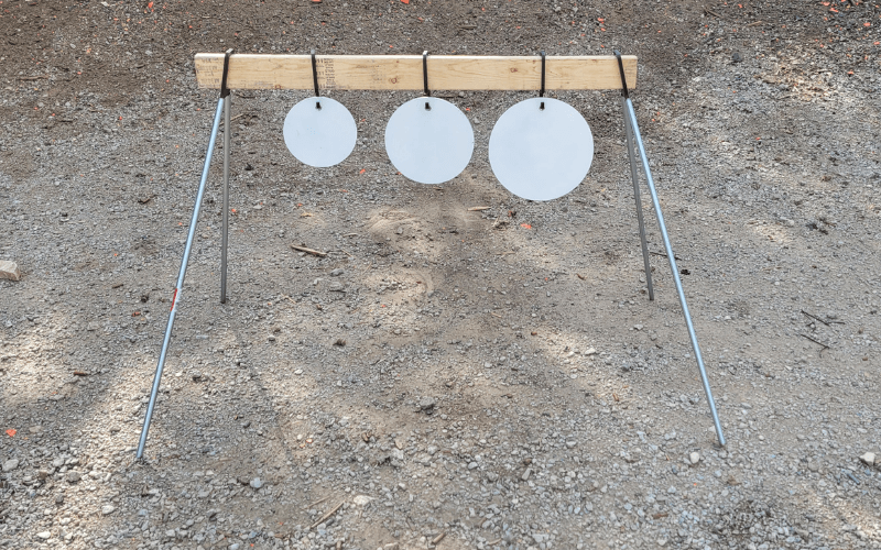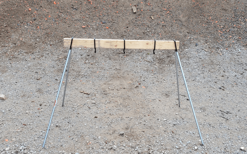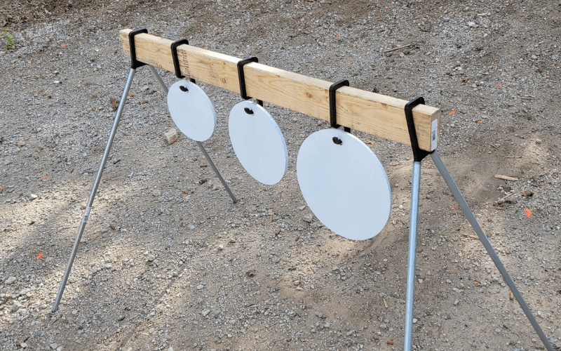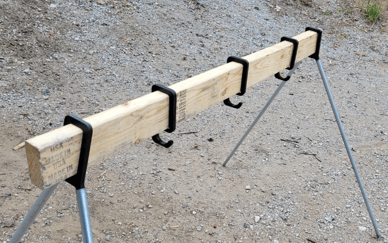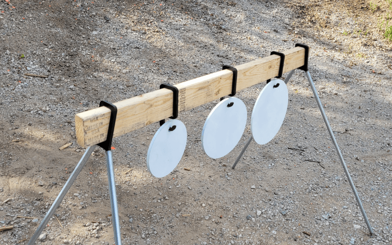 These hangers will allow you to make a plate rack to your desired height and length. Simply supply a 2×4 for your desired length and cut 1/2 inch conduit to your desired height. The system comes with the two end mounts and 3 hangers. These are cut from AR 500 so are very durable. Additional hangers are available for $5.00 each. (link to extra hangers here) Targets 2×4 and 1/2 conduit are not included.